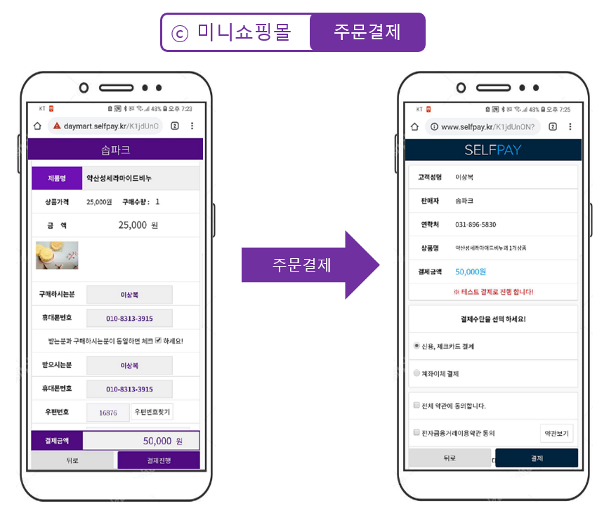 판매할 상품을 온라인 News로 노출시키고 이용자가 뉴스를 보다가 셀프페이 미니몰에 등록된 상품별 연결 URL로 바로 연결 구매할 수 있도록 합니다.